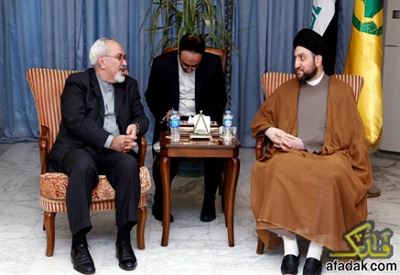 وقال مراسل وكالة {الفرات نيوز} ان"السيد عمار الحكيم استقبل عصر الاحد ظريف وتبادل معه وجهات النظر بشأن القضايا العراقية وتطوير العلاقات بين البلدين ".