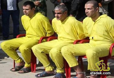 وظهر الثلاثة في ساحة بمقر قيادة العمليات بمدينة البصرة وهم جالسين على كراسي بلاستيكية حمراء اللون ويرتدون بزات صفراء خاصة بالمتهمين على ما يبدو وكانوا مكبلي الأيدي والأرجل.