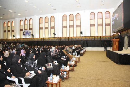 الأخوات الفاضلات....السيدات الكريمات .... في هذا الحفل البهيج الذي يعقد هنا في العاصمة بغداد وفي اغلب المحافظات العراقية بشكل متزامن أحييكن أجمل تحية واشكر لكن حضوركن واهتمامكن بهذا اليوم الكبير والمناسبة الكريمة ..