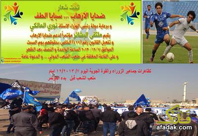 وأكد المصدر ان المؤتمر المزمع إجراؤه في ملعب الشعب يوم السبت جاء بدعوة من رئيس الحكومة نوري المالكي واضاف ان سوف يتكلل المؤتمر حضور كافة قيادات الدعوة ودولة القانون . علما ان وزارة الشباب والرياضة ووزيرها أجلت المباراة من الخميس الى السبت متناسية ان هنالك مؤتمر للدعوة يوم السبت في الملعب مما دعاهم الى تأجيلها مرة ثانية وان وزير الشباب جاسم محمد جعفرمن ينتمي الى الحزب الحاكم .