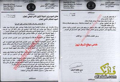 وينشر موقع اشرف نيوز هذه الوثائق التي حصلها عليها من مكتب وزير الدولة لشؤون الأمن الوطني.