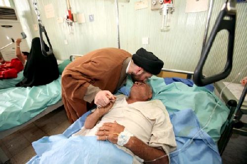 وقال السيد عمار الحكيم ان " زيارة المريض تأتي لرفع معنوياتهم بينما نرى العكس مع جرحانا حيث هم من يعطون أهلهم وزائريهم العزم والثبات ، ودليل ذلك أنهم ما زالوا بلباسهم العسكري ولم يغيروه".