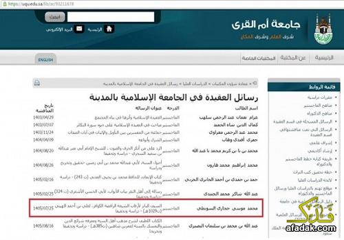 وأضاف “اليوم نعرض وثيقة سعودية تعد من صلب مناهج التربية والتعليم في السعودية المعتمدة رسمياً في المدارس والمعاهد والجامعات، ومنها جامعة أم القرى الرسمية السعودية وتطبق فيها مناهج حكومية مقررة بشكل رسمي، حيث أعادت الجامعة الإسلامية في المدينة عرضاً لرسائل الماجستير في العقيدة التي تمت مناقشتها في هذه الجامعة التي تتبع جامعة أم القرى وهي رسالة ماجستير للطالب محمد موسى حجازي السويطي والموسومة “السيف البتّار لرقاب الشيعة الرافضة الكفّار”، لعلي بن أحمد الهيتي.