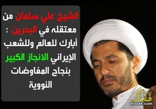 وافاد موقع الوفاق ان الشيخ السلمان قال في تغريدات نشرت على حسابه الرسمي في {تويتر} أبارك للعالم وللشعب الإيراني هذا الإنجاز الكبير بنجاح المفاوضات في الملف النووي .