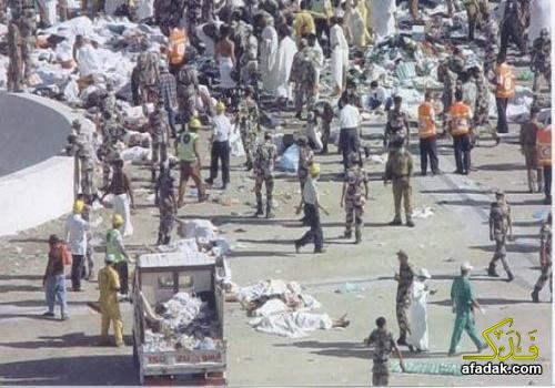 أستخدم أجلاف الوهابية السعودية الجرافات في رفع جثث جريمتهم التي أرتكبوها بحق حجيج بيت الله الحرام؛ الصور أدناه لا تحتاج الى شرح، لأنها تجسيد حي لتعامل الوهابيين مع بقية المسلمين ، حيث يعتبرون غيرهم سنة وشيعة وباقي طوائف المسلمي كفار ونجس!