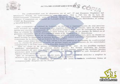 وقال الحكم في بلاغه أنه تلقى اتصالًا من المتحدث الرسمي بإسم لجنة الحكام خوسيه انخيل خيمينيز دي موراليس طالبه خلاله هو ومساعده بإتخاذ قرارات تحكيمية تصب في مصلحة النادي الملكي ريال مدريد في مباراة الكلاسيكو.