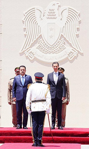 حيث جرت له مراسم استقبال رسمية في قصر الشعب وسط العاصمة السورية دمشق من قبل الرئيس السوري بشار الأسد . وترأس رئيس مجلس الوزراء السيد محمد شياع السوداني الوفد العراقي في المباحثات الموسعة التي عقدت مع الجانب السوري برئاسة الرئيس بشار الأسد