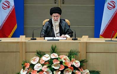 واوضح آية الله الخامنئي ان نزع اسلحة الدمار الشامل بات ضرورة ملحة وان ايران الاسلامية ترى استخدام الاسلحة النووية والکيمياوية ذنبا کبيرا لا يغتفر، وخط احمر ليس لأحد تجاوزه.. لکن معارضتنا له لا يعني التخلي عن حق الافادة من الطاقة النووية للاهداف السلمية.