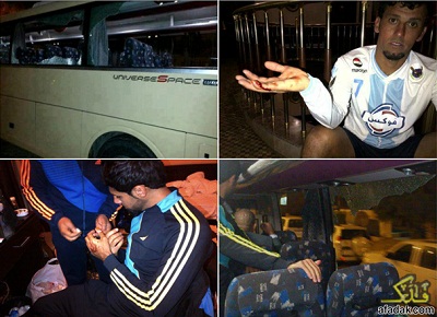 وقال لاعب القوة الجوية هيثم كاظم لوكالة{الفرات نيوز} ان جماهير اربيل قامت برشق الحافلة التي تقل الفريق مما ادى الى تكسير زجاجها واصابة عدد من اللاعبين من بينهم اللاعب مصطفى كريم الذي تعرض الى اصابة بليغة".