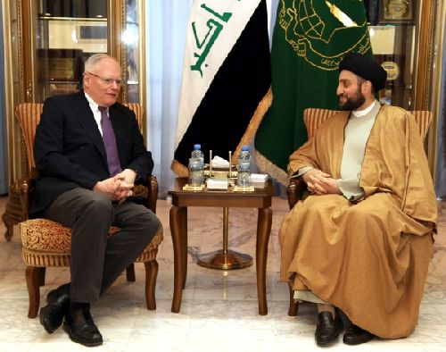 واقع انعقاد القمة العربية في بغداد وانعكاساتها الايجابية على العلاقات العراقية العربية، ومستجدات العالم العربي كانت اهم محاور اللقاء الذي عقد بين سماحة السيد عمار الحكيم رئيس المجلس الاعلى الاسلامي العراقي وسعادة السفير الامريكي لدى بغداد جون جيفري .