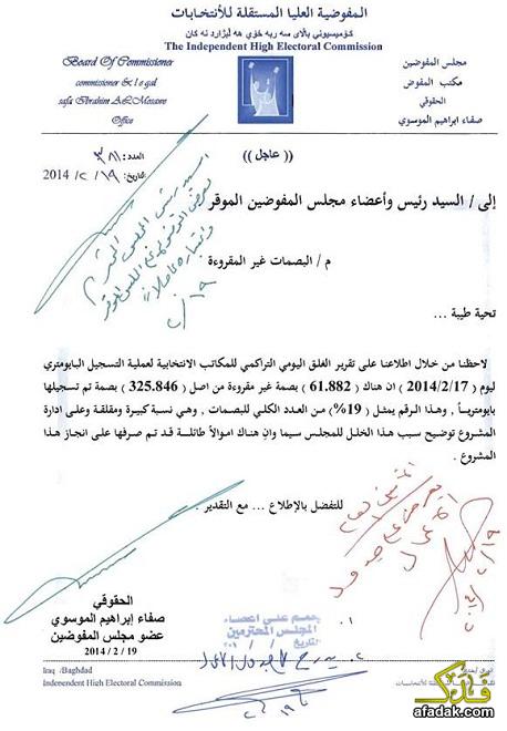 مصادر مطلعة تسرب معلومات خطيره لـ(وكالة ٧ أيام العراقية) عن المفوضية العليا للانتخابات بفشل مشروع البطاقة الاليكترونية مما أدى إلى استقالة أعضاء المفوضية العليا للانتخابات في العراق وصرف أكثر من ١٢٦ مليون دولار على المشروع بطاقة الناخب العراقي وان المفوضية تتعرض لضغوط حسب بيان المفوضية للانتخابات الصادر اليوم .