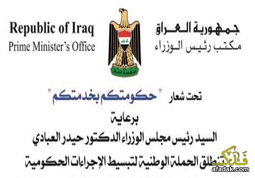 وقال مكتب رئيس الوزراء في بيان إنه "وتحت شعار حكومتكم بخدمتكم وبرعاية رئيس مجلس الوزراء حيدر العبادي تنطلق الحملة الوطنية لتبسيط الاجراءات الحكومية".وأوضح أن "احتفالية انطلاق الحملة كانت يوم الخميس ١١ حزيران ٢٠١٥".
