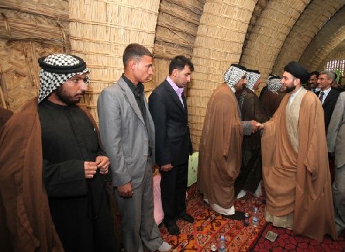 والذين استقبلوه بحفاوة من خلال الأهازيج معبرين عن سرورهم لقدوم سماحته واعتزازهم بأسرة آل الحكيم . وفي الكلمة التي ألقاها سماحته في الجموع المحتشدة أشاد فيها بالعشائر العراقية ودورها الريادي في الانعطافات التاريخية الوطنية.
