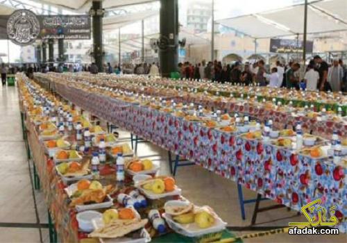 حيث تنصب يومياً سفرة للزائرين والوافدين الى المدينة المقدسة والى صحن الإمام “عليه السلام” كهف الفقراء وملجأ المساكين ما يكفي لثلاثة آلاف صائم, وتوزع آلاف الوجبات على شكل مفارز متنقلة في ارجاء المدينة, إذ تستمر “سفرة الصائم” الى نهاية شهر رمضان الكريم, ويحتوي هذا الشهر العظيم على مبادرات عديدة للتكافل الاجتماعي وإغاثة الفقراء, التي تعطي صورة ناصعة البياض عن مبادئ الاسلام المحمدي الأصيل، فترى الجميع يجلس على تلك السفرة الضخمة ليتشاركوا في الافطار.