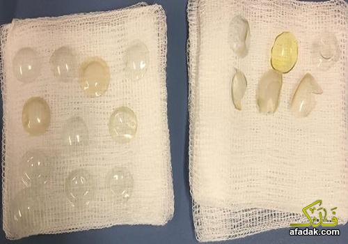 وقد اكتشف أخصائيو العيون بداية وجود ١٧ عدسة، وبعد إجراء الفحوصات اكتشفوا وجود ١٠ عدسات أخرى عالقة في العين.