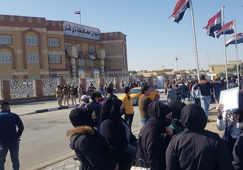 وقال مصدر من داخل المظاهرات ان، العشرات من حملة الشهادات العليا وخريجي الكليات والمعاهد في محافظة ذي قار جددوا صباح اليوم، تظاهراتهم أمام مبنى ديوان المحافظة للمطالبة بتنفيذ مطالبهم بالحصول على درجات وظيفية.