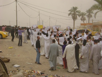 وافاد مراسل وكالة انباء المستقبل اليوم الاثنين ان :" العشرات من اهالي مدينة السماوة تجمهروا وسط المدينة رافعين لافتات تطالب بمحاكمة نائب رئيس الجمهورية طارق الهاشمي المتهم وفق المادة(٤/ ارهاب) في بغداد وعدم نقلها الى اقليم كردستان".