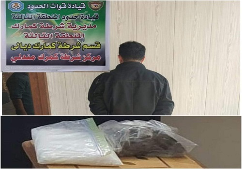 وقالت المديرية في بيان تلقت "شبكة فدك الثقافية" نسخة منهُ، ان" مفارز مركز شرطة كمرك مندلي التابعة لمديرية شرطة كمرك المنطقة الثالثة تمكنت من ضبط متهم بحوزته مواد مخدرة بوزن (١,٥) كغم في مندلي بمحافظة ديالى".