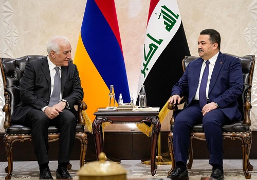 وعبر عن "اعتزاز العراق بالمواطنين العراقيين من أصول أرمينية، وأنهم يمثلون إضافة مهمة في تنوّع المجتمع العراقي، من خلال إسهامهم في مختلف المجالات العلمية والطبية والاجتماعية والثقافية"، مبدياً تقديره "لموقف أرمينيا بتصويتها لصالح وقف إطلاق النار في غزّة".
