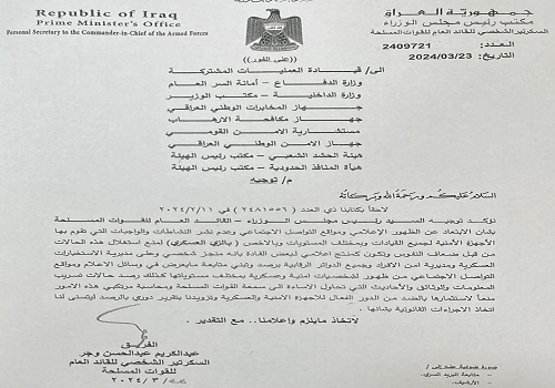 أصدر القائد العام للقوات المسلحة محمد شياع السوداني، اليوم السبت، توجيها للقادة الأمنيين بشأن الظهورالإعلامي على مواقع التواصل الاجتماعي. وذلك للحد من الترويج الاعلامي والانتاج الاعلامي للقادة الامنيين في العراق