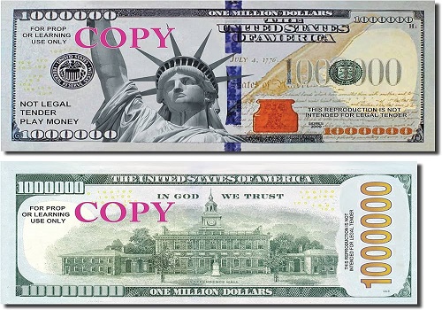 وأكد، أن " ان الورقة التذكارية المذكورة غير متداولة في اسواق النقد العالمية ، اذ انها صادرة عن جمعية المليونيرات الامريكية، ولا تعد هذه الورقة نقدية لكونها غير صادرة عن البنك الفيدرالي الامريكي ولا تمثل اي سند مالي، وتستعمل لأغراض الاهداء فقط".