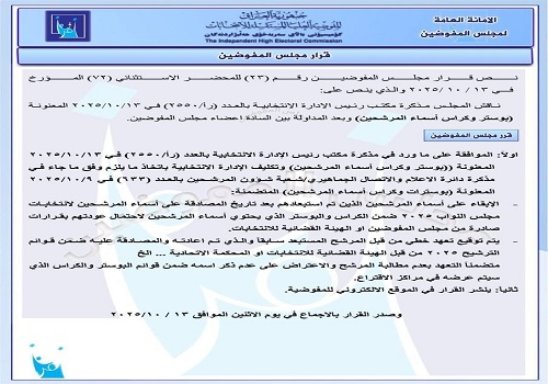 تأتي هذه القرارات في إطار حرص المفوضية على ضمان الشفافية والنزاهة في العملية الانتخابية المقبلة.