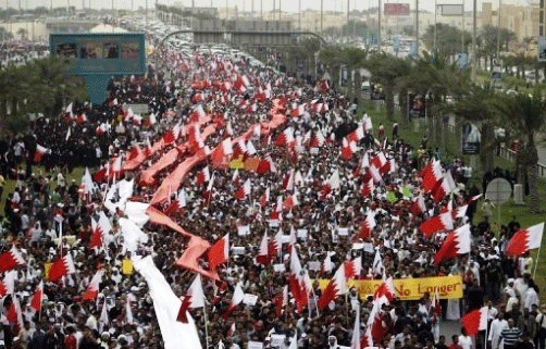 وتشهد المناطق والقرى تظاهرات شعبية تطالب بالتحول للديمقراطية وانهاء الديكتاتورية ضمن ثورة ١٤ فبراير في البحرين التي انطلقت قبل أكثر من عام ضمن سياق الصحوة الاسلامية.