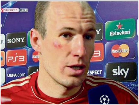 *الصورة لـ روبن بعد المباراة و يظهر فيها كدمة بسبب الضربة التي تلقاها من "ريبري"