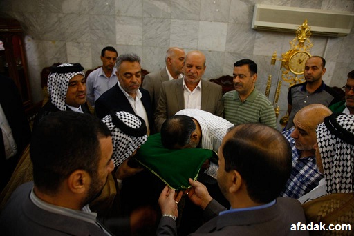 وقد تضمن الوفد الدكتور سليم الجصاني رئيس قسم الإعلام والعلاقات العامة في العتبة العلوية المقدسة والاستاذ خالد شنون رئيس هيئة المواكب، والاستاذ محمد الجبان والاستاذ حاكم دوش وجمع من وجهاء النجف الاشرف.