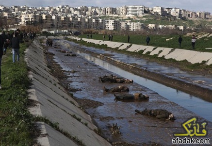 وذكرت المراسلة أن الجهات المعنية كانت قد وضعت في وقت سابق أسلاكا شائكة في مجرى نهر قويق لمنع تسلل الإرهابيين من المناطق التي يتواجدون فيها إلى المناطق الأخرى الآمنة لافتة إلى أن الجثث التي ادعى الإرهابيون ووسائل الإعلام الشريكة في سفك الدم السوري أن الجيش السوري قام بقتل أصحابها عثر عليها في الجهة التي يتواجد فيها الإرهابيون ولو قتلت في المناطق الآمنة لكانت علقت في هذه الأسلاك الشائكة قبل وصولها إلى المنطقة التي عثر عليها فيها.