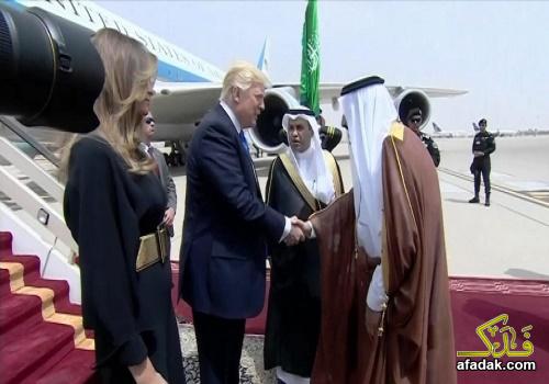 وكان في استقبال ترامب ملك السعودية سلمان بن عبد العزيز آل سعود.